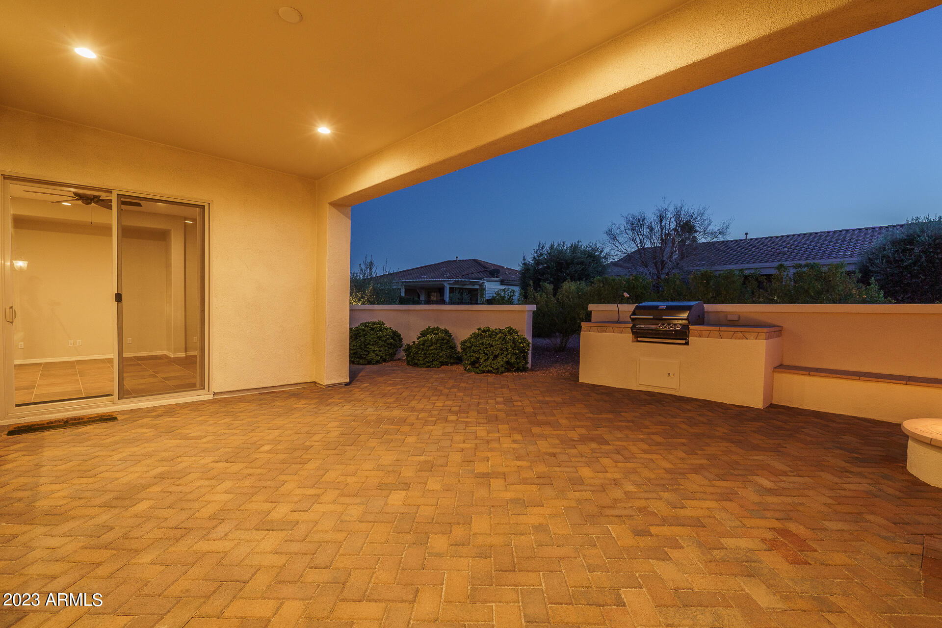 You can move right into this pristine home on a premium North/South facing cul-de-sac lot in gated Corte Bella and start living your active adult lifestyle right away with fabulous private amenities that include a pool and spa, multiple pickleball and tennis courts, golf, fitness club, day spa, a restaurant, and much more! This beautifully remodeled home offers 3 bedrooms + den/study and 2.5 baths in 2726 SqFt with separate living and family rooms. The gourmet kitchen features high-end KraftMaid cabinets with wood dovetail drawers, full overlay doors, decorative end panels, crown molding, oil-rubbed bronze hardware, soft close drawers and some roll-outs including a trash/recycling center. The countertops are high end Taj Mahal Quartzite with Ogee Edge that coordinate perfectly with the * old world designer backsplash. Stainless GE Monogram appliances include a 36" 5 burner gas cooktop with brass burners, convection wall oven & additional microwave oven, and dishwasher with interior LED lighting. Other features include a custom wood hood over the cooktop, a Kohler undermount farmhouse-style sink, and an oversized island providing additional storage and a breakfast bar for casual dining. Sliding doors lead out from the family room to the extended paver patio that includes a privacy wall with built-in BBQ and built-in seating areas around the gas firepit. The primary bedroom has a private exit to the backyard, a large walk-in closet with designer built-ins, and a spa-like en-suite bath. The dual vanities feature high-end Calcutta Gold Marble countertops, rare Kohler Artesian Series undermount sinks with designer drains and custom floating bevel edge mirrors; other features include Kohler Memoirs Raised Height dual flush toilets, a custom oversized tiled shower with frameless glass and handheld shower head offering PosiTemp and pressure adjustment. Your guests will enjoy oversized bedrooms and the all-new guest bath with a frameless glass tiled shower and extended vanity with Quartzite counters. Other features include Italian tile flooring throughout with durable textured carpet in secondary bedrooms, all new Minka Aire designer fans, all new Hunter Douglas top down/bottom up Roman shades and 4" plantation shutters, new lighting, new water shut-off valves and supply lines, all new interior Linen Low VOC Behr egg shell paint, upper/lower cabinetry with Quartzite counters and sink in the laundry room, all new sun screens & gutters, new Herringbone Holland pavers in the front and back yards, a 2 car garage with new high-end epoxy floors, utility sink, new Genie belt drive opener, new water heater, new water softener, Tuff Rack storage, and 50AMP outlet for your EV. A separate golf cart garage also features high end epoxy floors, Tuff Rack, and garage door opener. This home is truly a must-see! Schedule your showing today!
