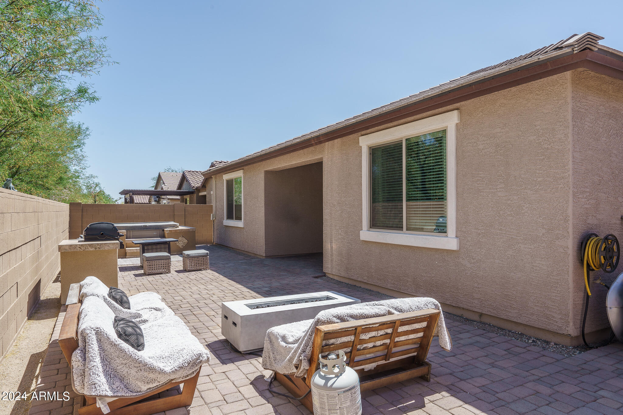 Welcome to this gorgeous home boasting a well-thought-out layout with 4 bedrooms, 2.5 bathrooms, a 3-car tandem garage, and an easy-care backyard! You will love the open floor plan with a beautiful kitchen featuring granite countertops, stainless steel appliances, a walk-in pantry, a stylish tile backsplash, and a spacious island with a breakfast bar. The great room has recessed canned lights and neutral wall tones. The primary suite has a neutral aesthetic with a lavish ensuite bathroom featuring a dual sink vanity, a separate shower and soaking tub, and a huge walk-in closet! The remaining bedrooms are move in ready and bedroom 2 and 3 have walk-in closets! Outside in the backyard, there is a paver stone-covered patio, an above-ground spa, a BBQ Station, and an RV gate! Do not miss out on this beautiful home!