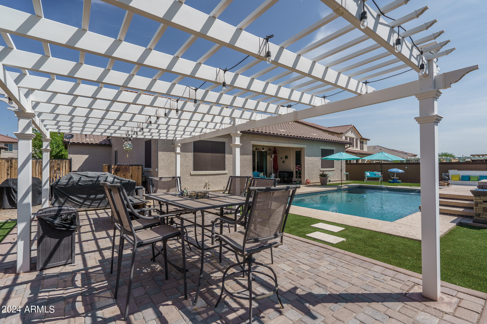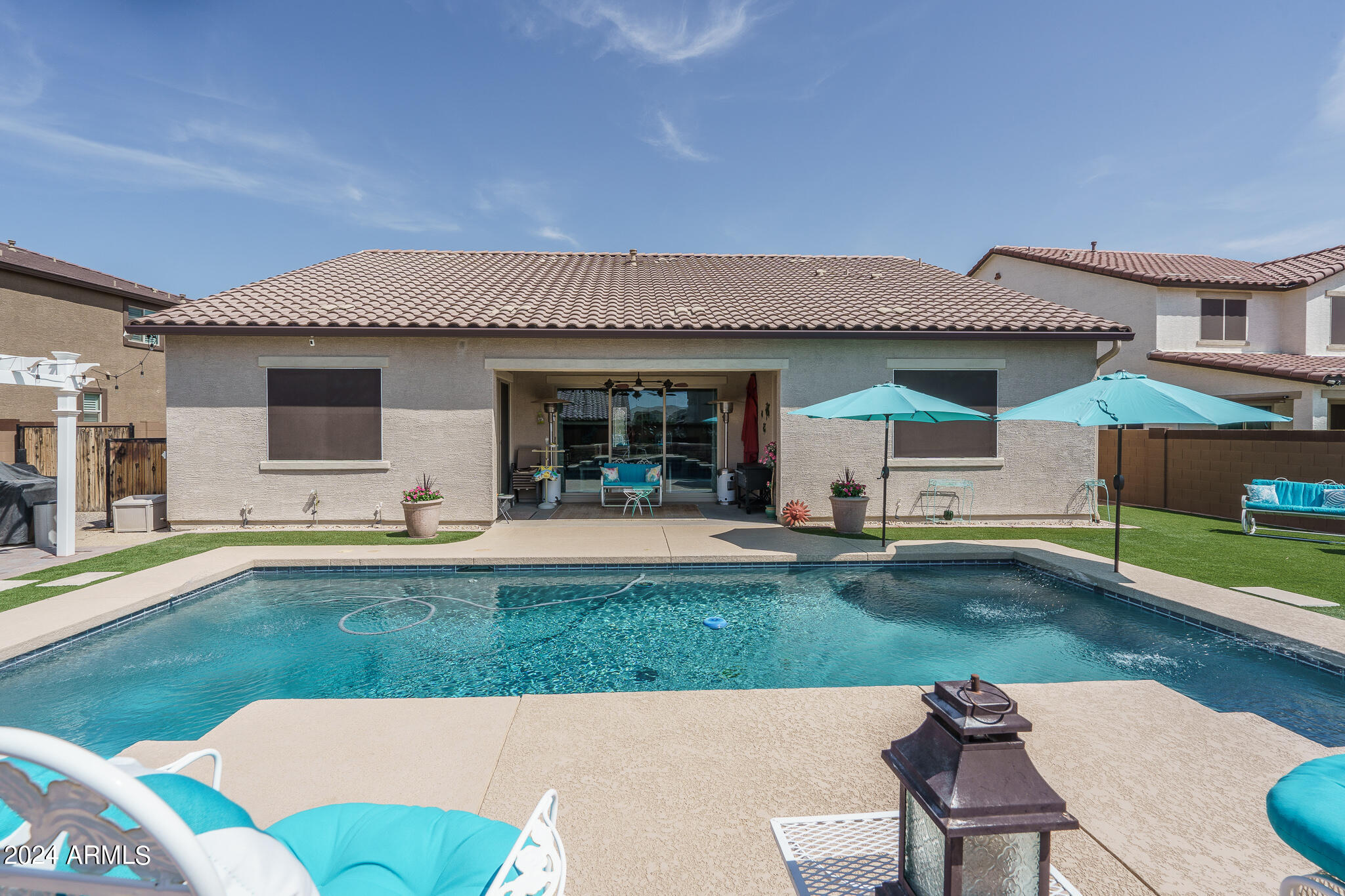 Step into luxury and comfort with this meticulouslymaintained home boasting an array of upgrades both inside and out! Featuring thedesirable Dominic layout, a 3 car garage, resort-style backyard, and a chef's kitchen! The shutters and gorgeouswood-look floors create a clean neutral aesthetic ready for any style! Thoughtfullydesigned and offering 4 bedrooms, 2.5 bathrooms, and a teen room this home hasno wasted space! The kitchen has granite countertops, soft-close maple cabinetry,double wall ovens, dual walk-in panties, and a spacious kitchen island with abreakfast bar. The great room is cozy with an accent wall with a built-infireplace, a modern ceiling fan, crown molding, surround sound, and amulti-panel sliding glass door that open up to your private oasis. The primary suite is gener Step into luxury and comfort with this meticulously maintained home boasting an array of upgrades both inside and out! Featuring the desirable Dominic layout, a 3 car garage, resort-style backyard, and a chef's kitchen! The shutters and gorgeous wood-look floors create a clean neutral aesthetic ready for any style! Thoughtfullydesigned and offering 4 bedrooms, 2.5 bathrooms, and a teen room this home hasno wasted space! The kitchen has granite countertops, soft-close maple cabinetry,double wall ovens, dual walk-in panties, and a spacious kitchen island with a breakfast bar. The great room is cozy with an accent wall with a built-in fireplace, a modern ceiling fan, crown molding, surround sound, and a multi-panel sliding glass door that open up to your private oasis. The primary suite is generous in size with a private exit to the backyard and a lavish ensuite bathroom with a dual sink vanity, soaking tub, and walk-in closet! The remaining bedrooms are move-in ready! Through the upgraded sliding glass door you will be welcomed by your dream backyard!With a covered patio, easy-care artificial grass, and a refreshing pool with a water feature. Enjoy the mountain views from the built-in seating and wood-burning fire pit! Additional features include an RV gate, sunscreens, and garage storage cabinets. This home is a dream come true!