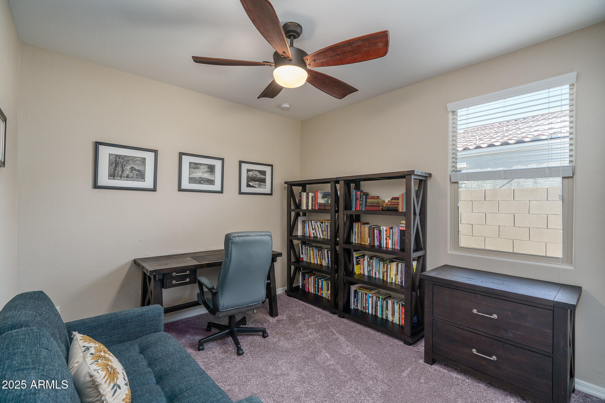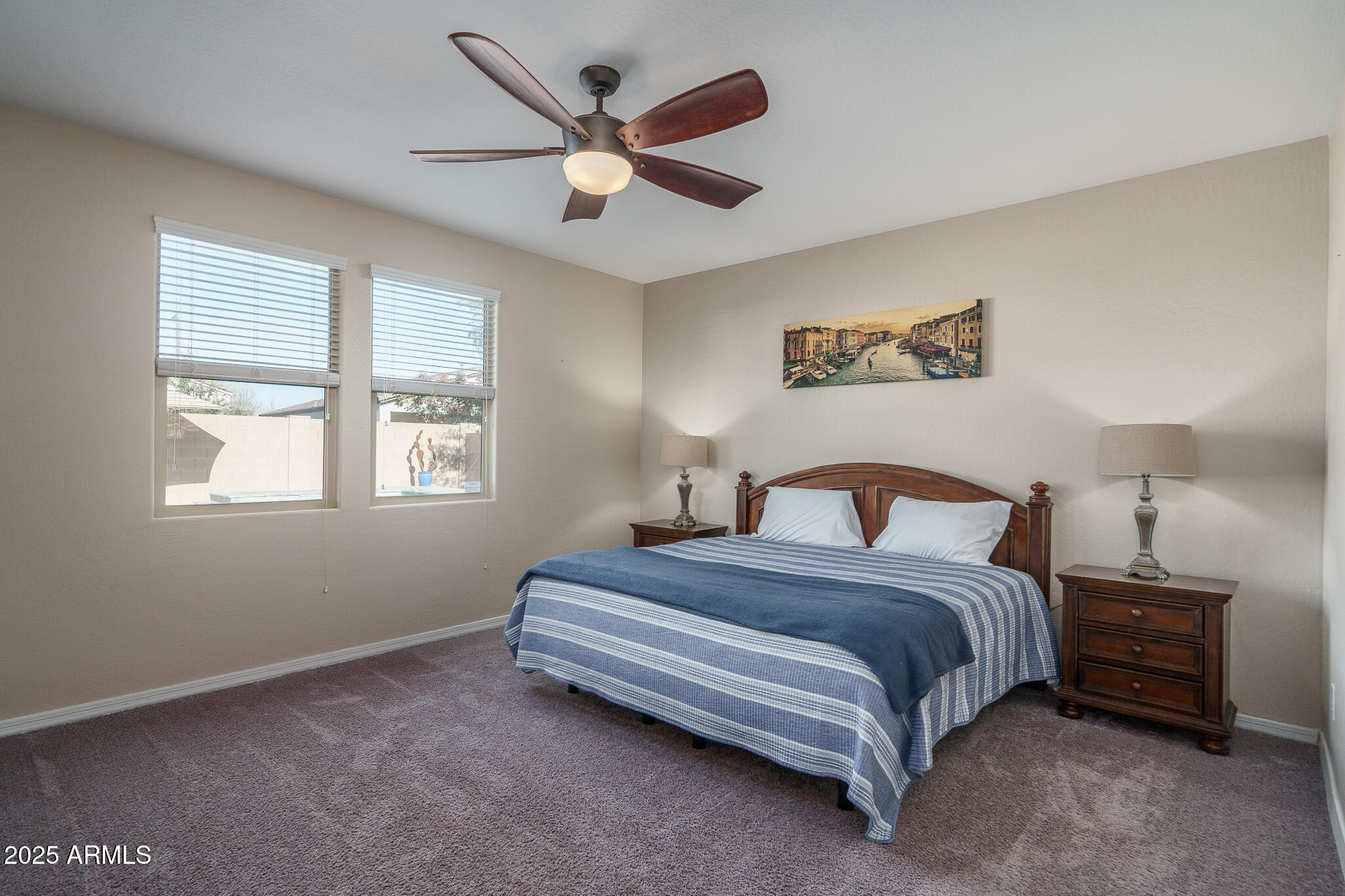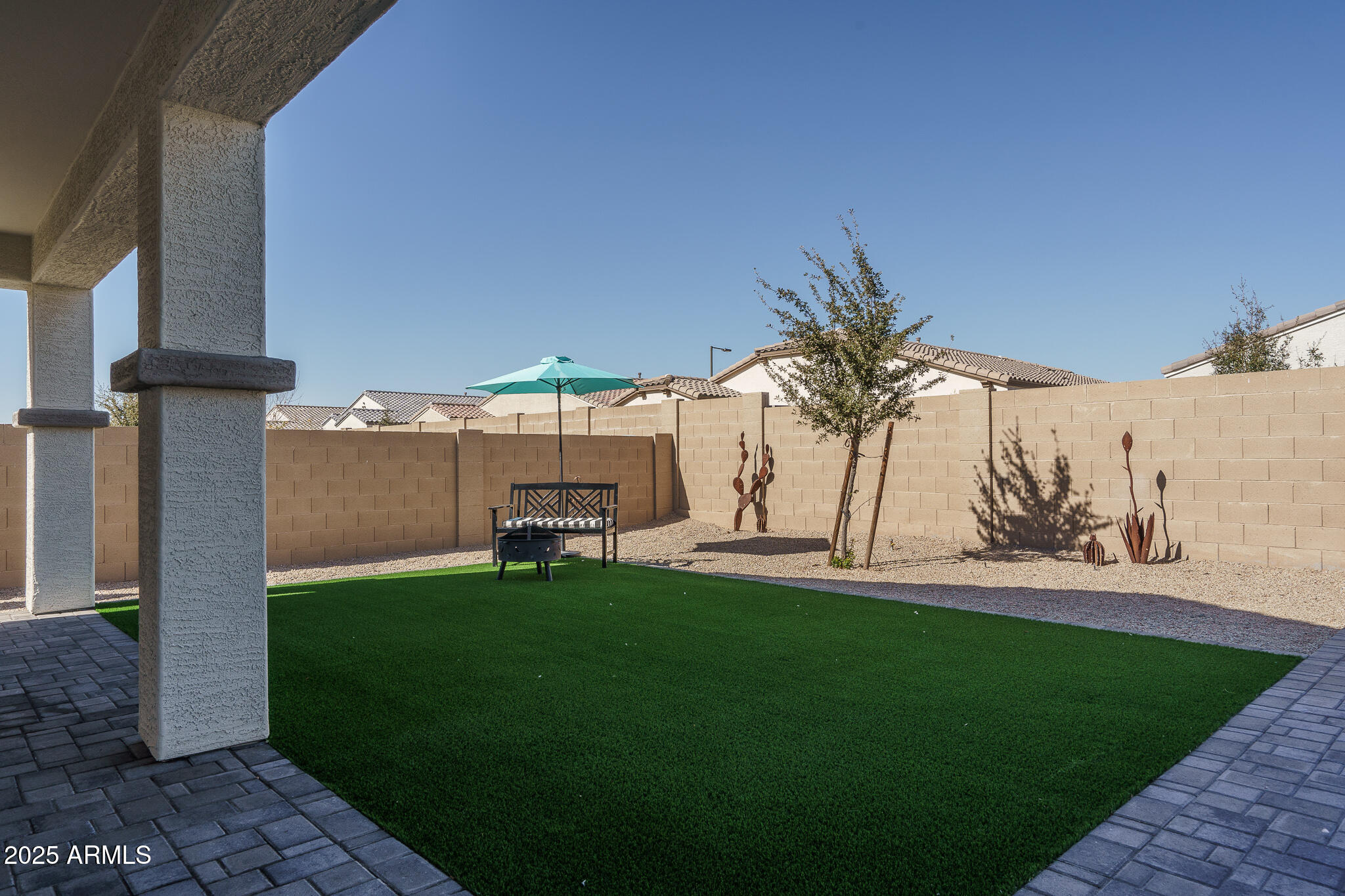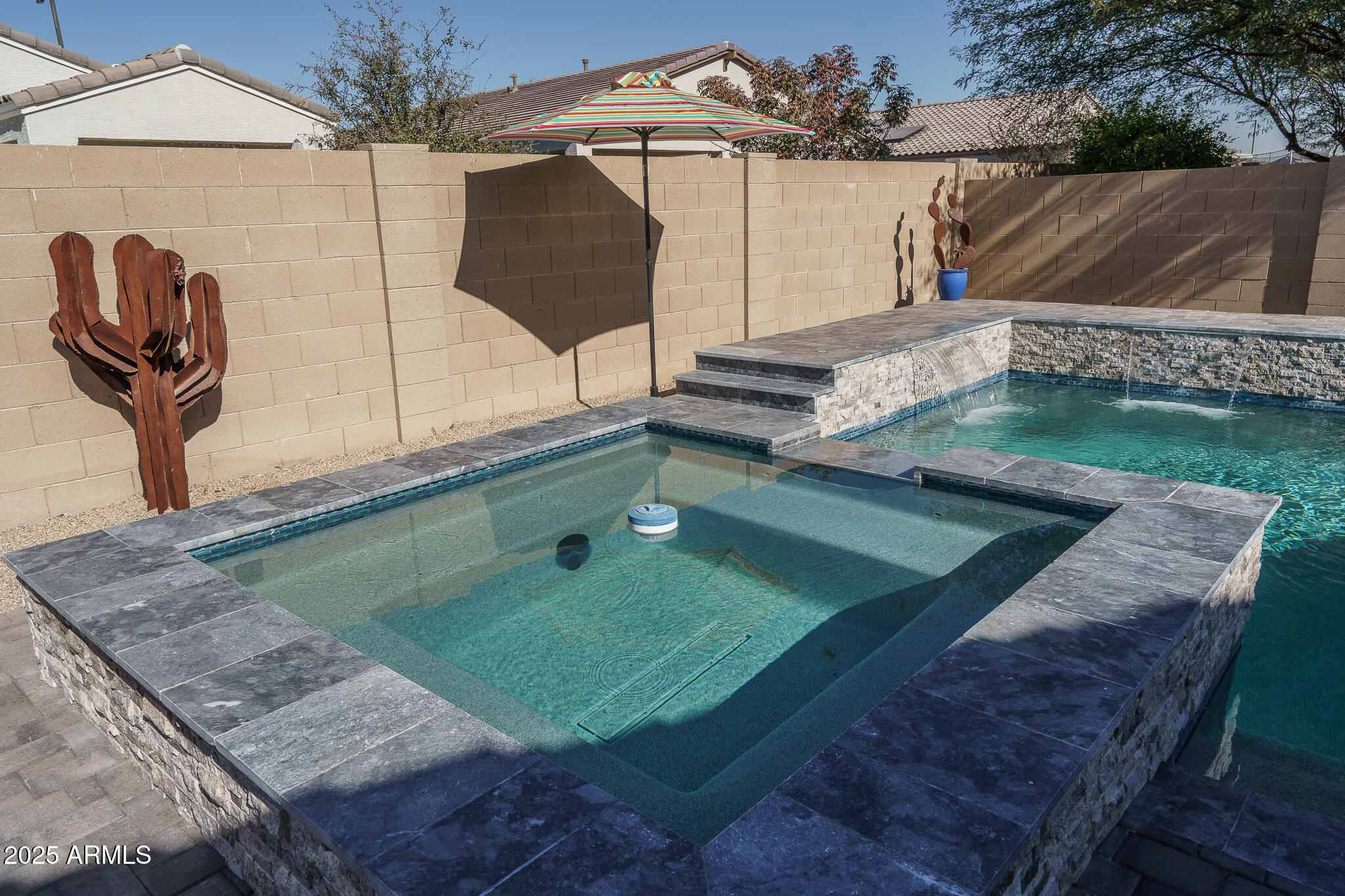 This original-owner home sits on an oversized lot and features 4 bedrooms & 2 baths in 1935 SqFt with a beautiful heated pool & spa in the backyard! The open great room layout is ideal for family living and entertaining. The kitchen has an abundance of white cabinetry with crown molding, granite countertops, stainless appliances, a pantry, and an island with breakfast bar. Sliding glass doors lead out to the covered paver patio and a great backyard featuring a heated pebble sheen pool and spa with stacked stone accents and sheer descent water features, artificial turf for kids and pets to play on, and only single story neighbors. The primary bedroom has an en-suite bath with dual sink vanity, oversized shower, and a walk-in closet. Two secondary bedrooms also have walk-in closets, and both baths have granite countertops. Other features include a spacious laundry room, tile floors throughout living areas and baths, carpet in bedrooms, and a 2 car air conditioned garage with service door and an extended paver driveway.