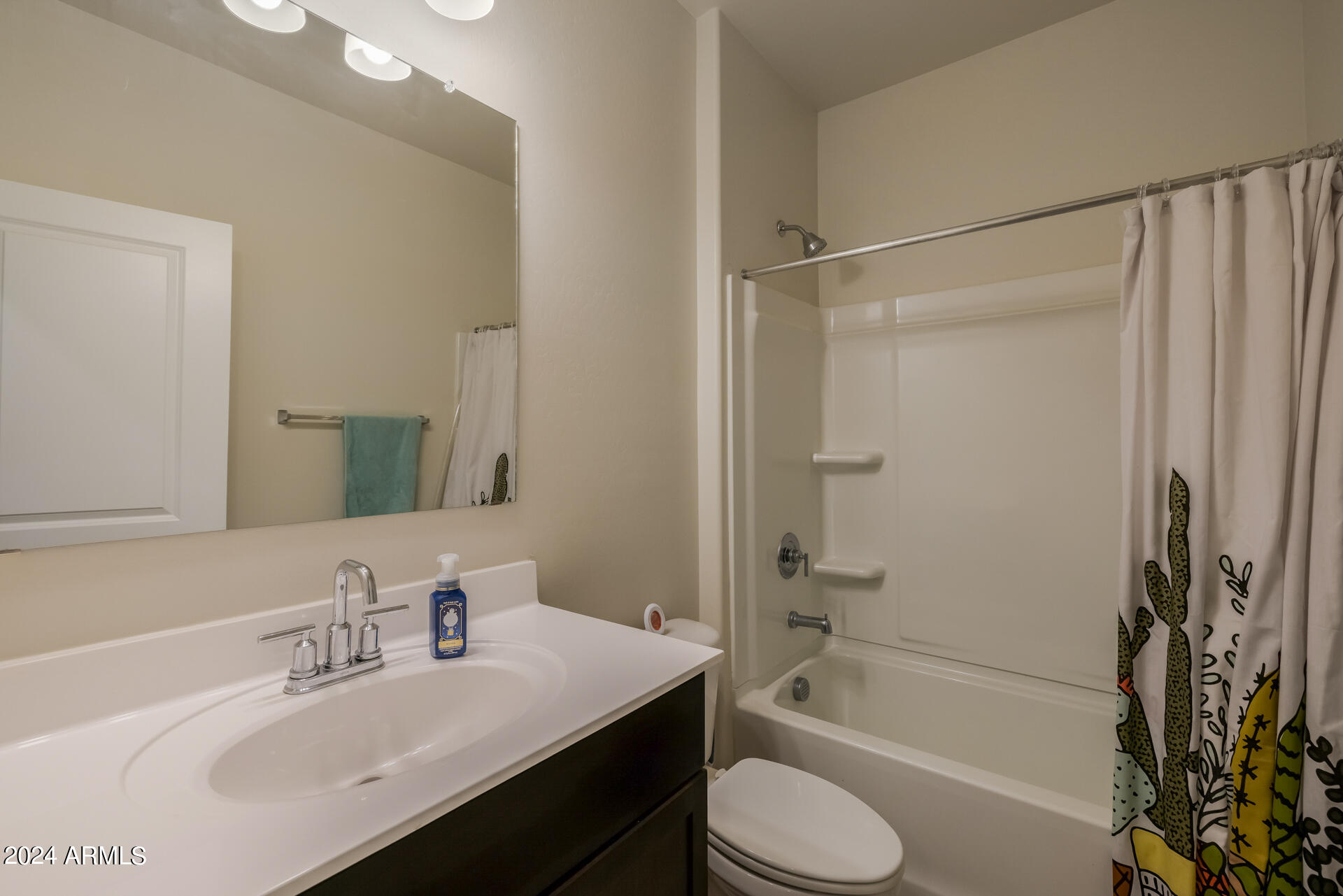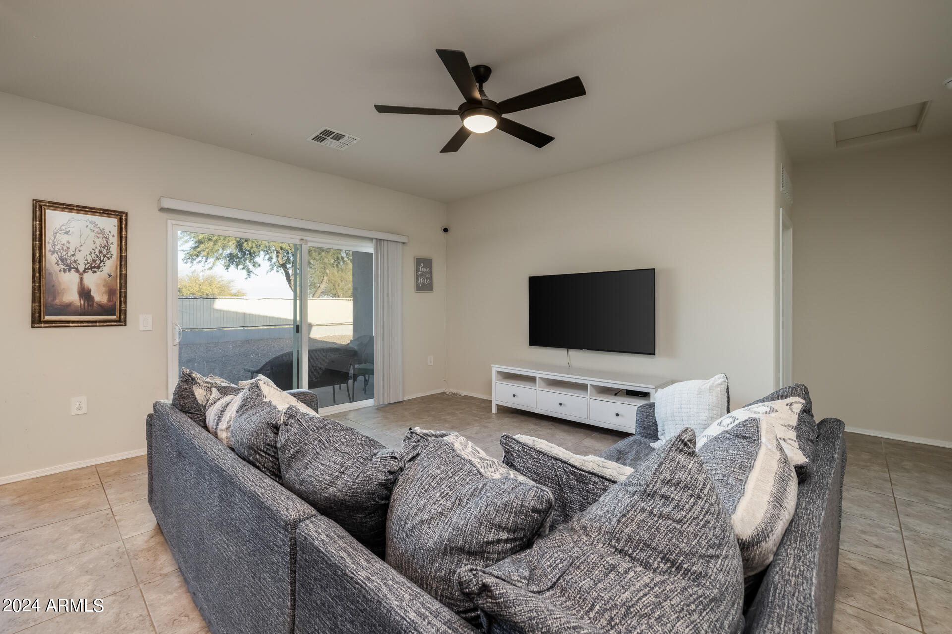 Welcome to this gorgeous home with an RV gate sitting on a huge 7,580 sq ft lot! Featuring a well-thought-out floorplan with 4 bedrooms, 3bathrooms, and a spacious great room and loft. The kitchen has beautiful upgrades featuring granite countertops, stainless steel appliances, recessed canned lighting, a walk-in pantry, and a kitchen island with a breakfast bar.The primary suite is downstairs, featuring an ensuite bathroom with a dual sink vanity and a huge walk-in closet. There is another bedroom downstairs, perfectf or an office! Upstairs is a spacious loft with the remaining bedrooms both finished with ceiling fans and blinds. One of the bedrooms has a walk-in closet! The downstairs laundry room has additional storage space that wraps around the staircase. The backyard is huge and easy to care for with gravel and no neighbors behind! Do not miss out on this gorgeous home!