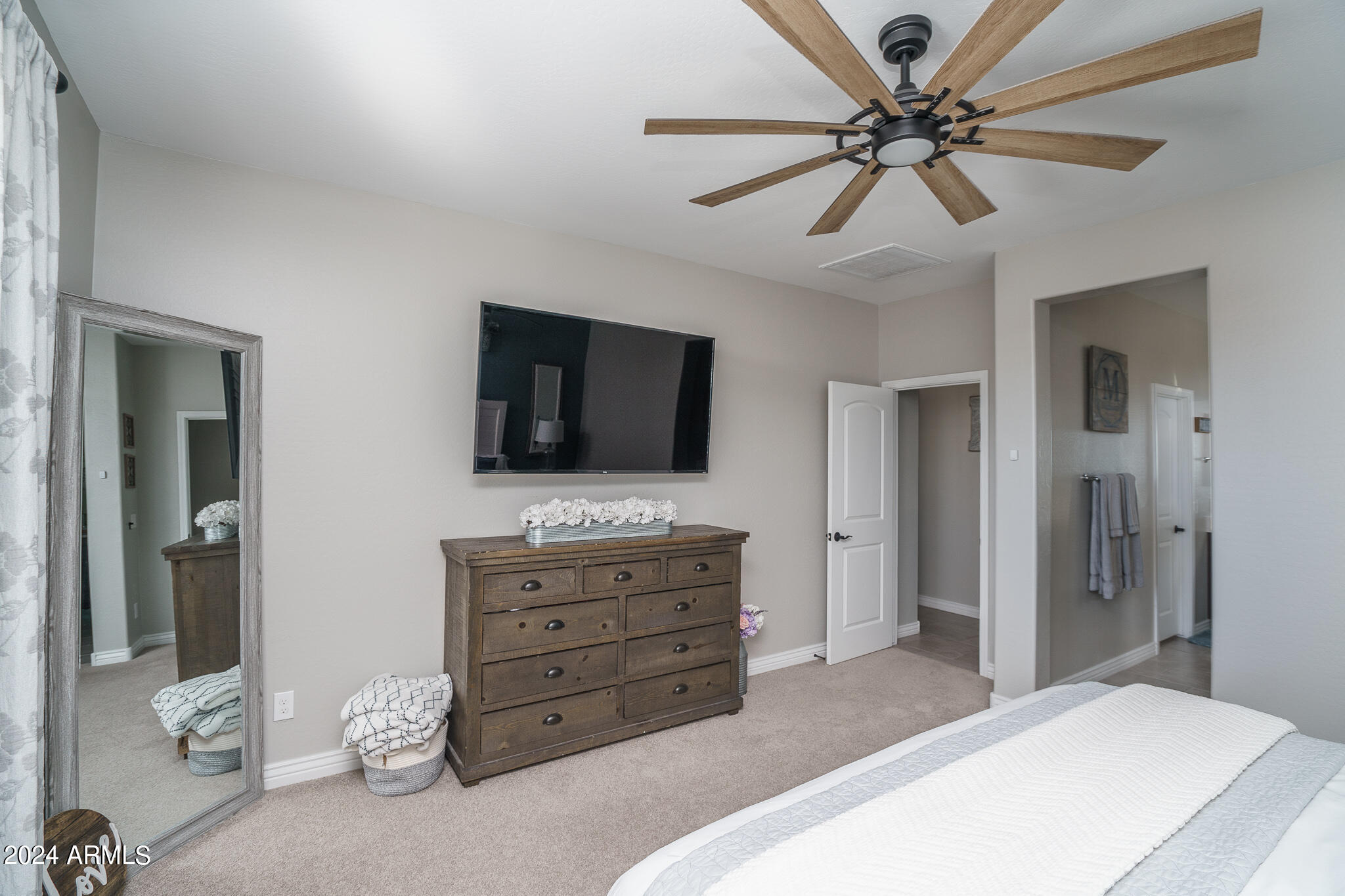 You'll love this beautifully upgraded one-owner home in Rancho Mercado that offers 3 bedrooms + open den and 2 baths in 1695 SqFt. Floor plan includes 3 bedrooms + open den and 2 baths in 1695 SqFt with an open great room layout. The kitchen has upgraded cabinetry with hardware, Quartz countertops, subway tile backsplash, stainless appliances, pantry, and island with breakfast bar and designer pendant lighting. Sliding doors lead out to the covered patio and private backyard with additional paver patios, easy-care artificial turf, & mountain views. The primary bedroom has an en-suite bath with dual sink vanity, oversized shower and roomy walk-in closet. Other features include plantation shutters, neutral grey two-tone paint, upgraded tile and carpet, upgraded baseboards, crown molding, ceiling fans, recessed lighting, stone exterior elevation, and a 2 car garage. Schedule your private showing today!