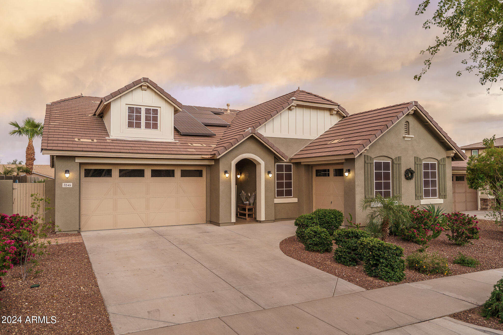 Welcome to your dream home! This stunning property boasts a spacious layout with 3 bedrooms plus a den, 2.5 bathrooms, and a 3.5 car garage. Step inside to discover a clean, neutral aesthetic complemented by beautiful floors and tasteful accent walls throughout. The heart of the home is the gorgeous kitchen featuring two-toned countertops, stainless steel gas appliances, a walk-in pantry, and a generously sized kitchen island with a breakfast bar. Retreat to the luxurious primary suite complete with a bay window, lavish ensuite bathroom featuring a separate shower and soaking tub, and a spacious walk-in closet. The remaining bedrooms have new carpet and are move-in ready, while the den, with its double doors, offers flexibility for use as an office or additional living space. Outside, the backyard is an entertainer's paradise, featuring a stunning heated pool with a serene waterfall feature. The covered patio is equipped with two ceiling fans, remote-controlled motorized shades, and an added pergola with a paved seating area, providing the perfect setting for outdoor gatherings and relaxation. Don't miss the opportunity to make this your forever home!