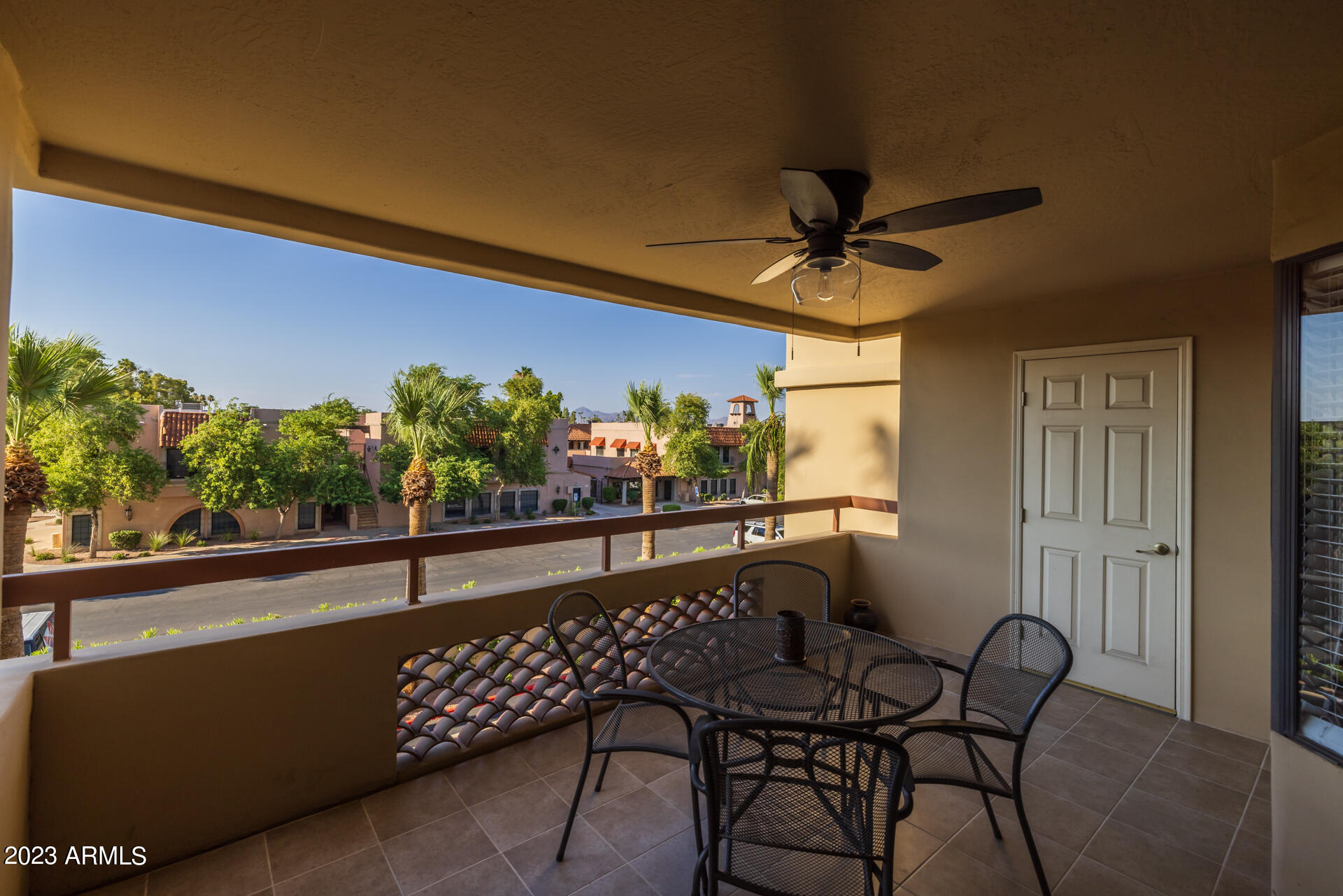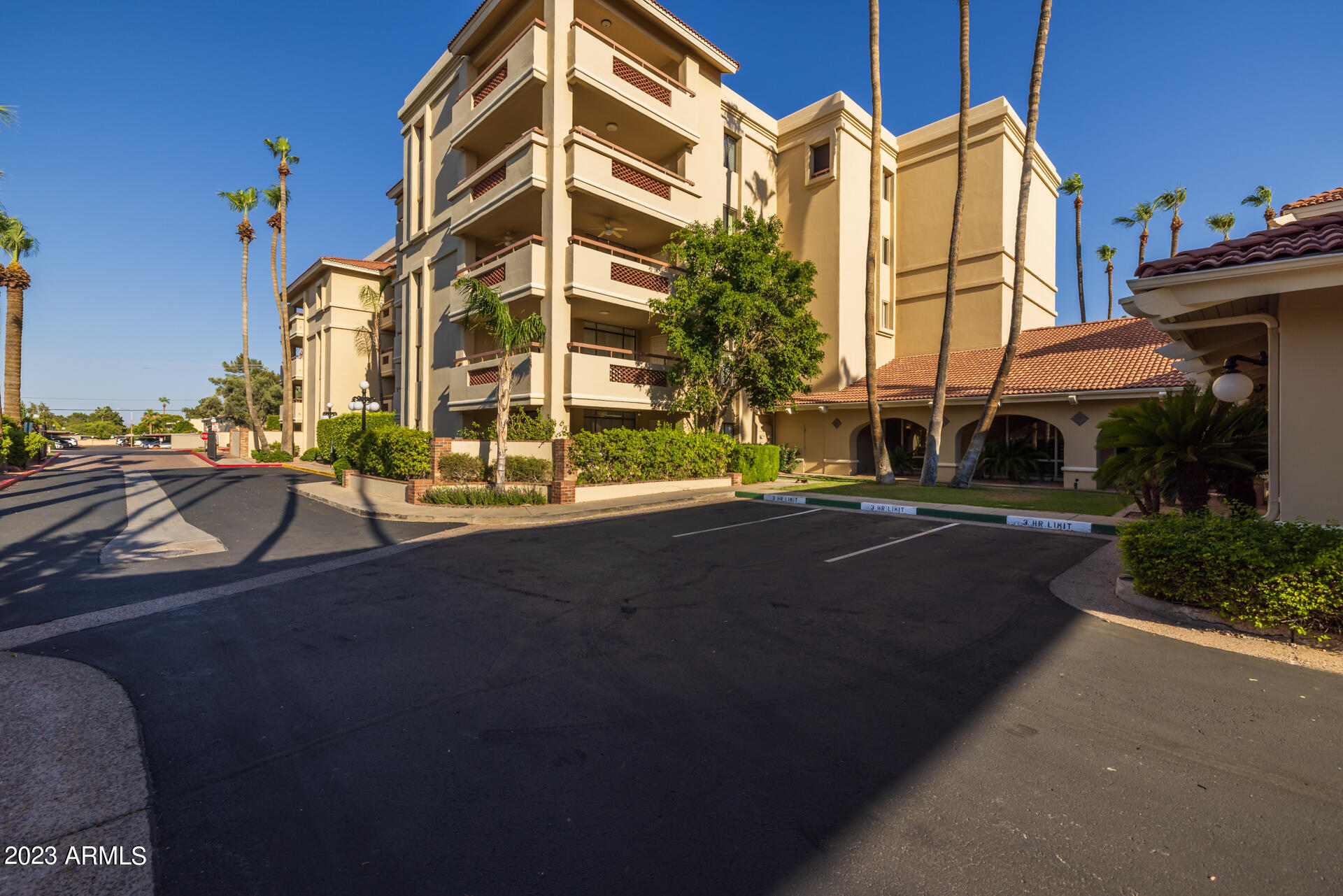 Welcome to this exquisite 2 bedroom, 2 bathroom condo located in the heart of Old Town Scottsdale, just a few blocks from Scottsdale Stadium! This home has been completed remodeled! With its modern design, premium finishes, new flooring, and convenient location, this condo is the perfect place to call home. The AC was fully replaced in 2022, and the plumbing was updated in 2022. The kitchen features modern cabinets with handles, new stainless steel appliances, stylish tile backsplash, and gorgeous granite countertops. This condo boasts two split spacious bedrooms, providing ample space for relaxation and privacy. The primary suite has a walk-in closet and a lavish ensuite bathroom featuring dual vessel sinks and a tiled shower. Step out onto the covered balcony and take in the scenic mountain views. The balcony has tile floors a ceiling fan, and a storage closet. The laundry room is also located off the balcony.
