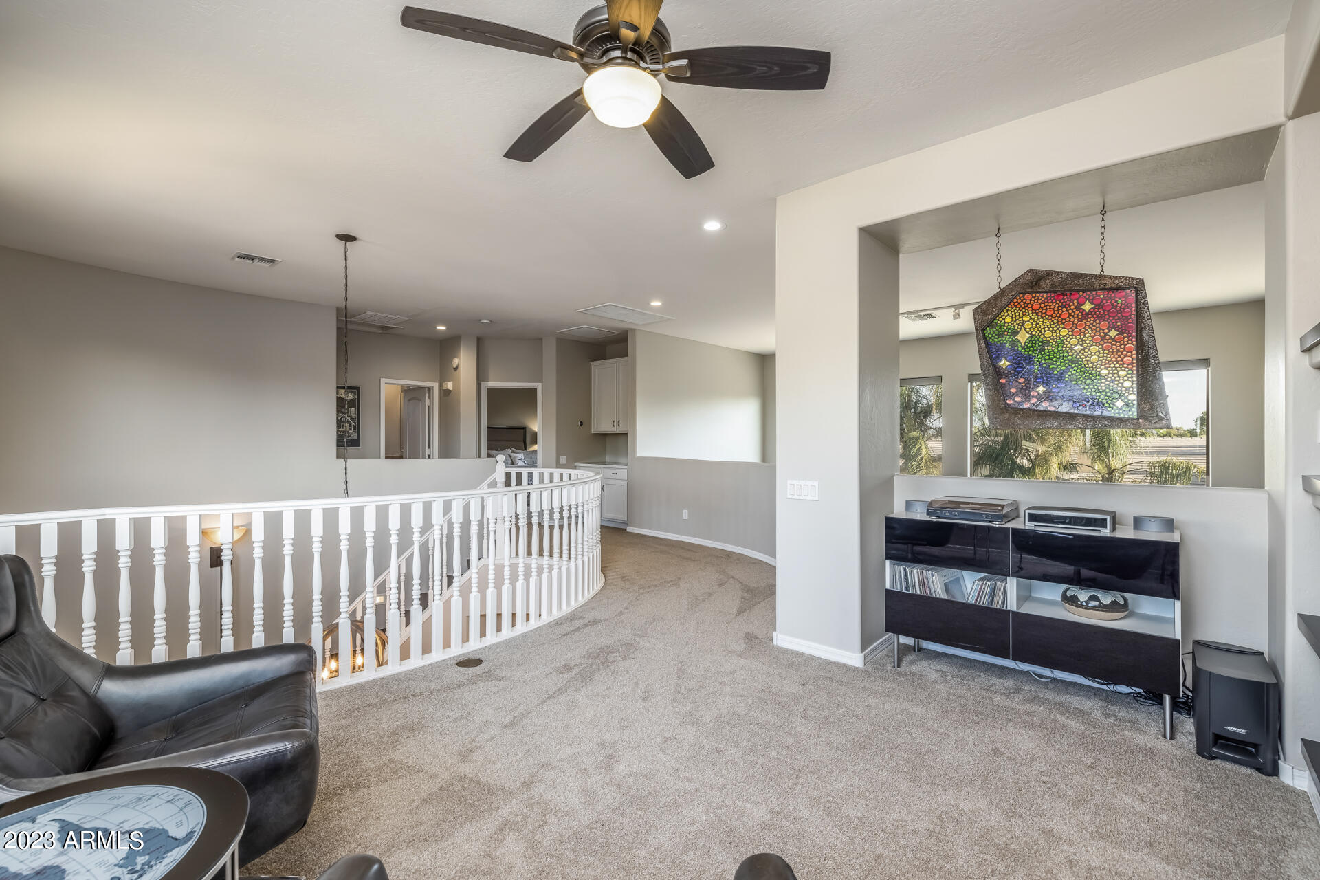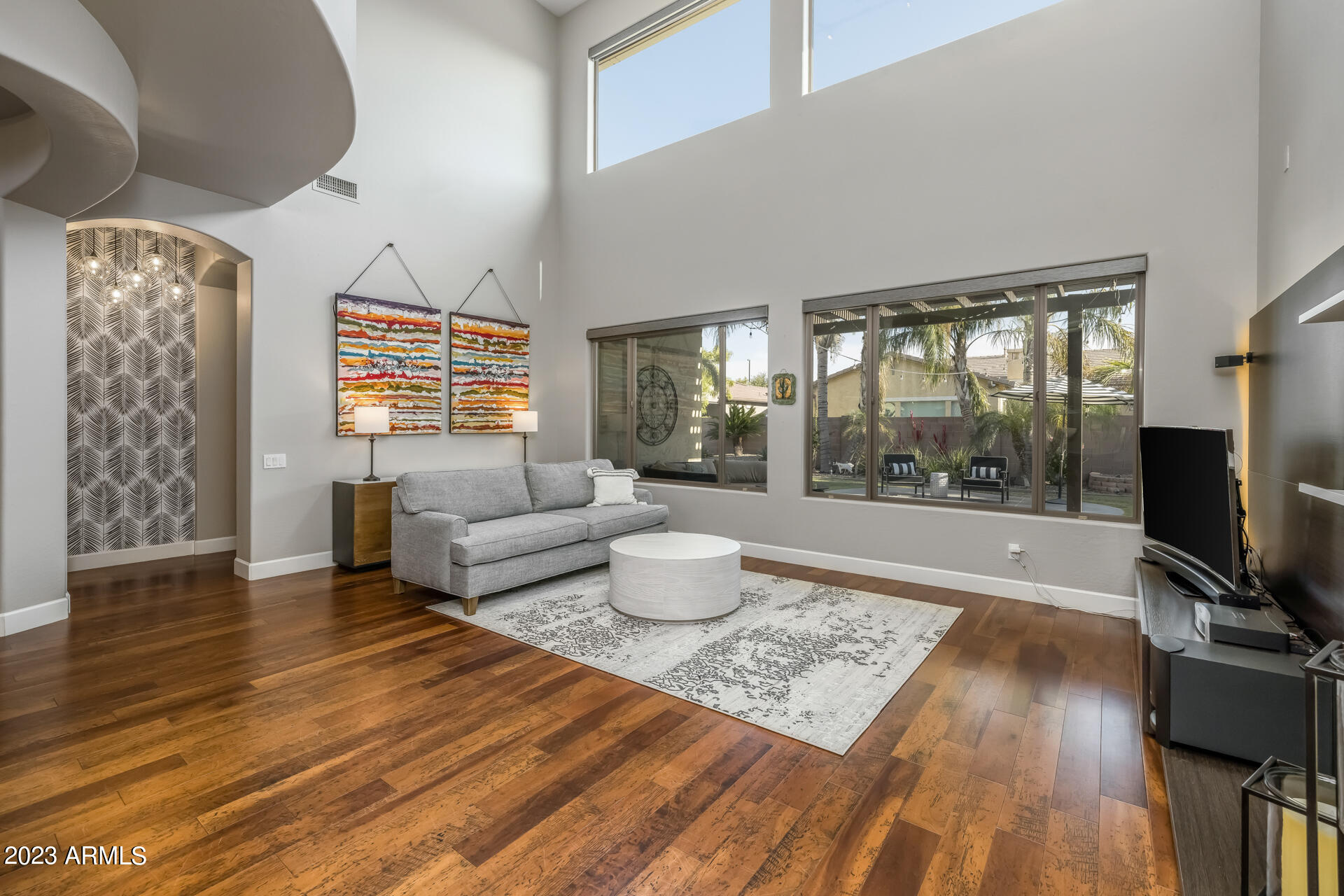 This luxurious 3,527-sqft home behind the gates of the desirable lake community Lagos Vistoso has over $125k in upgrades including 2 new air conditioners and a fully-owned 13kW solar system with a 10kW battery. The home features 3 three generously sized bedrooms, a versatile downstairs bonus room perfect for an office (or easily converted to a fourth bedroom), separate family and great room spaces and an upstairs loft. A charming courtyard welcomes you as you enter the home complete with a gas fireplace and seating area. The stunning entry foyer features dramatic vaulted ceilings and a grand curved staircase. The home has 10-foot ceilings throughout and a 20-foot ceiling in the great room, as well as custom motorized shades in the dining room, great room and primary ensuite. The gourmet chef-style kitchen features white cabinetry with glass door inserts, Carrara marble tile backsplash, stainless steel wall appliances, wine chiller, a gas cooktop with a sleek hood, granite countertops, and an expansive kitchen island with pendant lights and extra storage underneath. The primary suite, conveniently located on the main floor, features recessed lighting, crown molding and a luxurious ensuite complete with an oversized tile shower, a separate soaking tub, dual sink vanities and dual custom walk-in closets. The backyard is a private retreat with raised garden beds, lush grass, majestic trees and a covered patio with custom flooring, ceiling fan, and a pergola extension. Upstairs, a loft area featuring a built-in entertainment wall provides additional versatile space, and the remaining 2 bedrooms feature walk-in closets for maximum storage space. Additional features include an oversized 3-car garage with epoxy floors, storage cabinets and a Kinetico whole-house water filtration/softener system.
